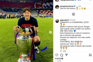 李刚仁晒与“大耳朵杯”合影庆祝夺冠,久保建英评论:恭喜兄弟